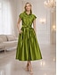 גזרת A עד הריצפה שמלת חולצה שמלת אורח לחתונה שמלה רשמית שמלה לאם הכלה שרוולים קצרים צווארון חולצה אלגנטית מסיבה רשמי אורחת חתונה טפטה עם פפיון(ים) בלוק צבע