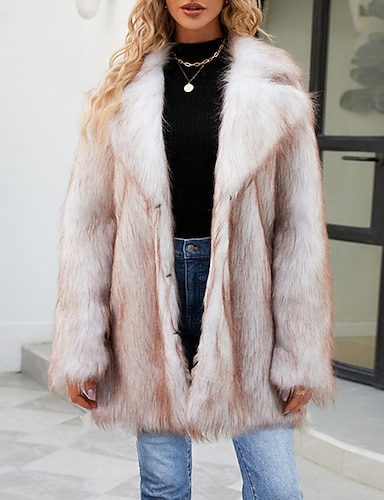 בגדי ריקוד נשים מעיל מעיל פרווה שמור על חום הגוף נוח פרוות ועורות אופנתי קשירה וצביעה חופשה לבוש יומיומי ליציאה סוף שבוע ארוך צווארון מתקפל רגיל שרוול ארוך הלבשה עליונה לבן סתיו חורף