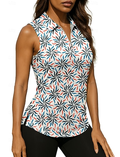 בגדי ריקוד נשים פרחוני בוטני חולצות חולצת ספורט חולצת POLO חולצת טניס ללא שרוולים רוכסן UPF50+ עמידות UV גמישות גבוהה פתילת לחות נושם טניס פיקלבול ריצה צווארון מתקפל צווארון רוכסן חולצה עליונית טנק