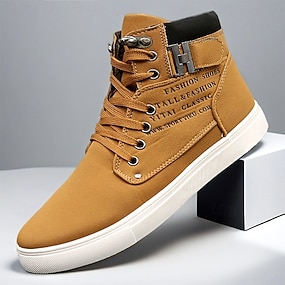 נעלי ספורט גבוהות לגברים מעור דמוי עור בצבע חום בהיר עם עיצוב שרוכים, נעליים קז'ואל אופנתיות להליכה, עבודה ותלבושות סוף שבוע