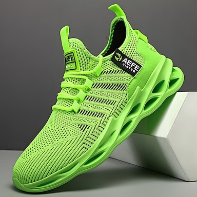 נעלי ספורט גברים ניאון ירוקות - נעלי ריצה קלות רשת נושמות עם סוליה מרופדת עבור חדר כושר, אימונים ופעילויות חוצות