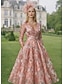 גזרת A באורך הקרסול שמלות קוקטייל אלגנטית פרחוני ללא שרוולים צווארון V חתונה רשמי תחרה V חזרה עם פפיון(ים) ריקמה אפליקציות