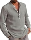בגדי ריקוד גברים חולצת קיץ חולצת חוף אחיד קזו'אל יומי לבן פול חאקי אפור שרוול ארוך צווארון V קיץ ביגוד שרוכים לכל האורך