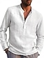 בגדי ריקוד גברים חולצה חולצת פשתן חולצה פופ-אובר חולצת קיץ ביגוד חוף חולצות רטרו צבע אחיד חופשה חגים לבן שרוול ארוך צווארון V קיץ אביב ביגוד ניטים