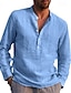 בגדי ריקוד גברים חולצה חולצת פשתן חולצת צווארון להקה חולצת קיץ ביגוד חוף צבע אחיד רחוב הוואי כחול בהיר שחור לבן אדום יין שרוול ארוך קולר ביגוד