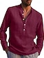 בגדי ריקוד גברים חולצה חולצת פשתן חולצת צווארון להקה חולצת קיץ ביגוד חוף צבע אחיד רחוב הוואי כחול בהיר יין אדום שחור לבן שרוול ארוך קולר קיץ אביב ביגוד