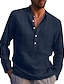 בגדי ריקוד גברים חולצת כותנה פשתן חולצת כותנה לבנה חולצת צווארון סיני חולצת צווארון מנדרינית חולצת קיץ חולצת חוף אחיד חופשה קזו'אל לבן כחול נייבי פול חום שרוול ארוך צווארון V קיץ & אביב ביגוד