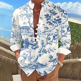 בגדי ריקוד גברים פרחוני בוטני חולצת הוואי חולצת אלוהה שרוול ארוך הוואי אתר נופש חופשה קזו'אל קיץ אביב צווארון V כפתורים פול