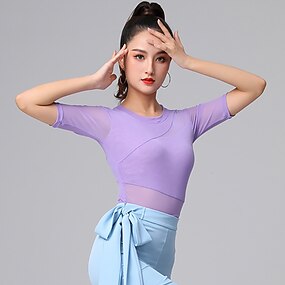 ריקוד לטיני ריקודים סלוניים עליון צבע טהור שחבור טול בגדי ריקוד נשים הצגה הדרכה שרוולים קצרים גבוה פוליאסטר
