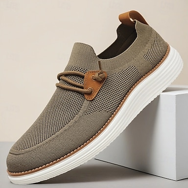 נעלי ספורט קז'ואל סרוגות נושמות לגברים - נעלי הליכה קלות משקל עם שרוכים ללבוש יומיומי ולנסיעות