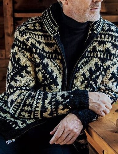 בגדי ריקוד גברים סוודר קרדיגן קרדיגן סוודר רוכסן ז'קט סוודר סוודרים לחג המולד שמנמן לִסְרוֹג רוכסן מצולע צבע אחיד צווארון עומד(סיני) חג מולד סריגים לבוש יומיומי פגישה (דייט) ביגוד שרוולי ראגלן