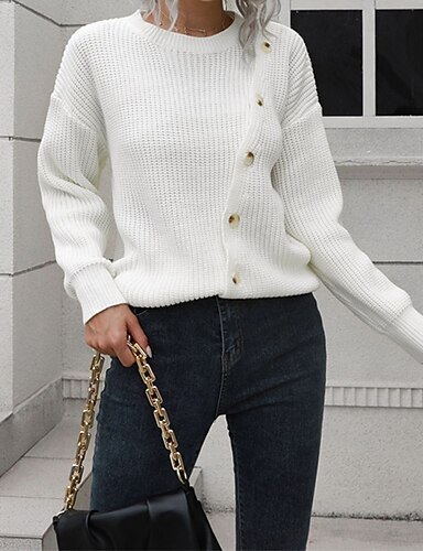 בגדי ריקוד נשים סוודר סוודר בסיסי יום יומי צבע אחיד מצולע גולף דרופ כתף שרוול ארוך חוּלצָה לִסְרוֹג יומי חגים שחור לבן סתיו חורף