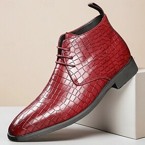 מגפוני קרסול מעור דמוי עור אדומים לגברים עם דוגמת תנין - נעלי ערב אופנתיות עם שרוכים למסיבות, חיי לילה ואירועים מיוחדים