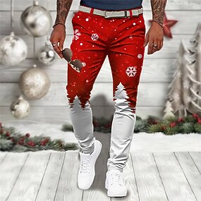 חג המולד גברים סצנת חג המולד מכנסיים מודפסים פתית שלג עסקים קז'ואל הדפס תלת מימד מכנסיים חיצוניים ללבוש רחוב לעבודה פוליאסטר שחור ולבן יין צהוב s m l מכנסי גמישות גבוהה
