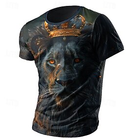 בגדי ריקוד גברים נָמֵר מצחיק חולצה קצרה שרוולים קצרים חולצה קצרה הדפסת תלת מימד צווארון עגול קצר חולצה אופנתי יומי רחוב יומי שחור פול קיץ אביב ביגוד S M L XL XXL XXXL