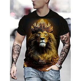 בגדי ריקוד גברים גראפי חיה אריה חולצה קצרה שרוולים קצרים חולצה קצרה הדפסת תלת מימד צווארון עגול קצר חולצה וינטאג' אופנתי מעצב בָּחוּץ יומי ספורט שחור צהוב אודם אביב קיץ ביגוד S M L XL 2XL 3XL