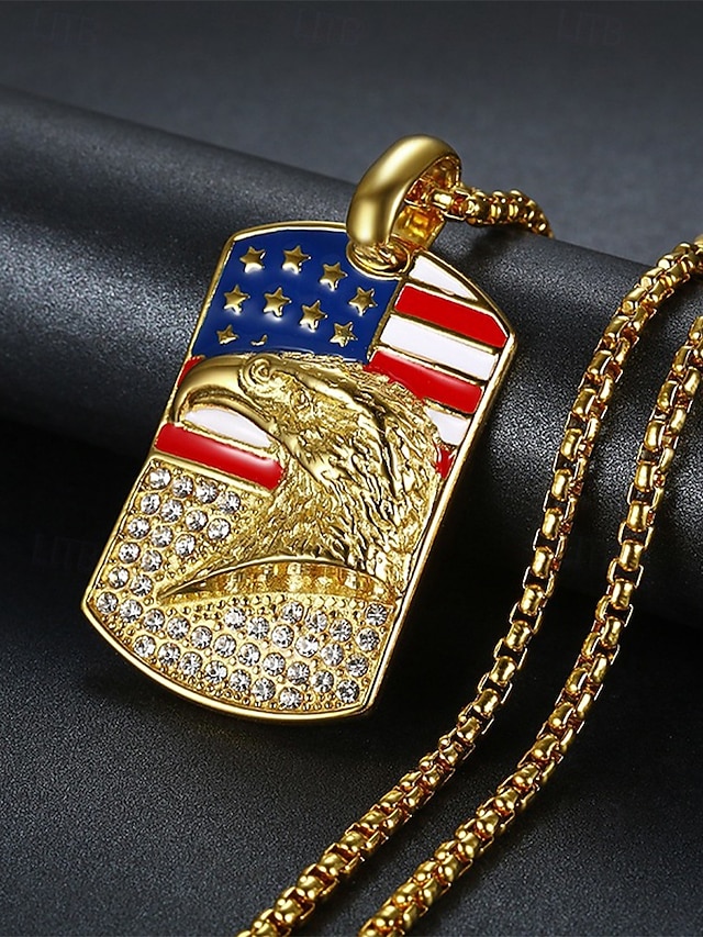 שרשרת תליון סגסוגת לגברים עם דגל ארה"ב ונשר, זמינה בזהב וכסף, מושלמת לציון 250 שנה לארה"ב, יום העצמאות וללבוש יומיומי #10565366
