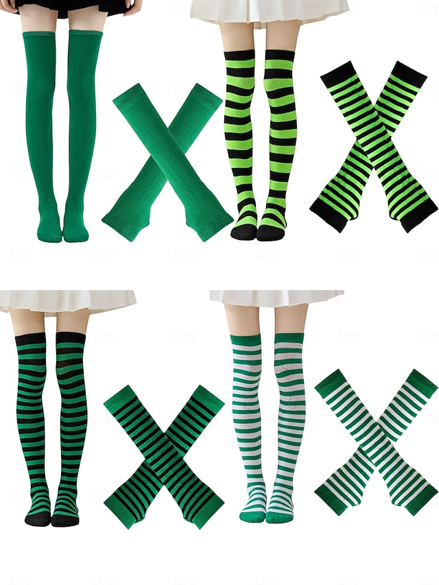 גרבי יום פטריק הקדוש לנשים &סט מחממי ידיים, 4 חלקים ירוק &גרביים שחורות מפוספסות עד הברך עם כפפות תואמות ללא אצבעות, אביזרי תחפושת מהנים לפסטיבל אירי לנשים &בני נוער, מושלם עבור #10707766