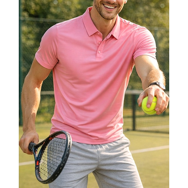 בגדי ריקוד גברים אחיד חולצת ספורט חולצת טניס שרוולים קצרים ייבוש מהיר מתיחה פתילת לחות נושם טניס גולף פיקלבול צווארון פולו צמרות אפור כהה שחור ורוד בגדי טניס#12759077