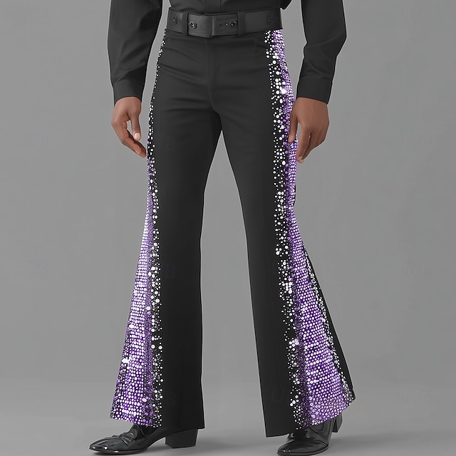 בגדי ריקוד גברים תבנית גאומטרית מכנסיים מכנסי דיסקו מכנסי פעמון משנות ה-60 וה-70 מותן בינוני רטרו וינטג' בָּחוּץ מפלגה קזו'אל כיסי צד מכנסיים מתרחבים אביב סתיו הדפסת תלת מימד שחור 1 שחור #13841089