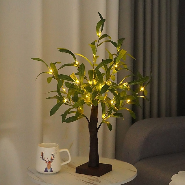 אור עץ מדומה של עלי זית לד 50 ס"מ/19.69 אינץ' סוללת aaa USB דו-תכליתי אביב וקיץ מקורה חדר שינה סלון חדר אוכל מסיבה שולחן עבודה קישוט אביזרים קישוט אור אווירה#14061552