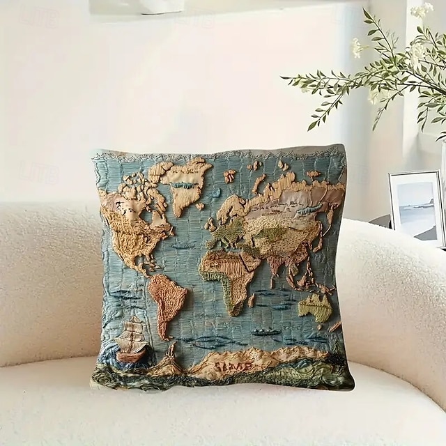 כיסוי כרית מפת עולם וינטג' עם הדפס שטוח דו-ממדי עיצוב חד-צדדי הכולל מפת חקר העולם הישן כיסוי כרית דקורטיבי לספה עיצוב הבית#14947652