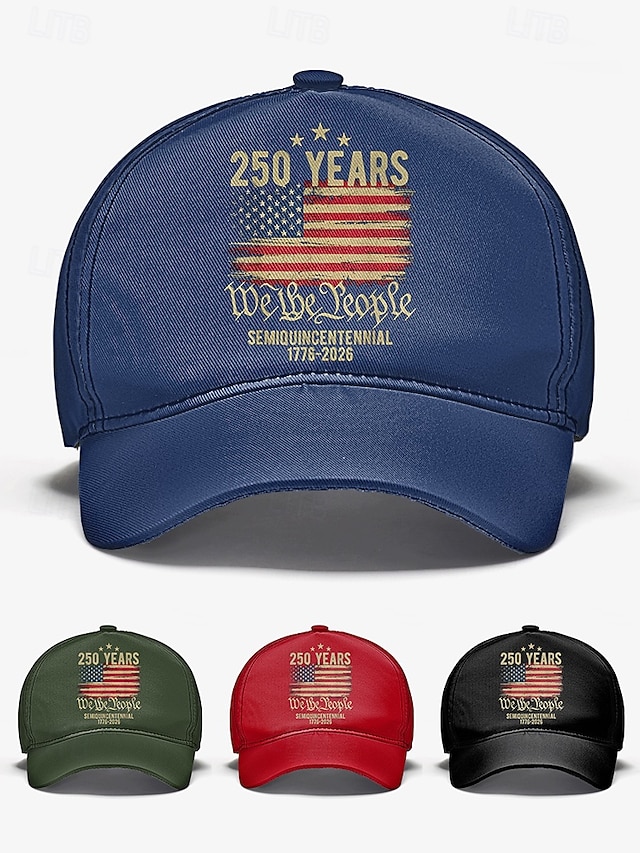 כובע בייסבול מתכוונן לגברים - חגיגות 250 שנה ויום העצמאות, מגוון צבעים, חומר פוליאסטר, מושלם לאירועים חיצוניים ולבוש חגיגי #15657981