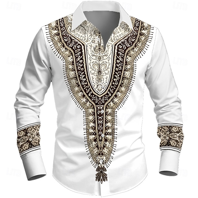 בגדי ריקוד גברים אתיקה / אפריקאית פרחוני מורכב פרחים חולצה חולצה עם כפתורים שרוול ארוך רטרו וינטג' חגים יום יומי\קז'ואל אביב סתיו צווארון מתקפל הדפסת תלת מימד חולצות צווארון לבן כחול גמל / לבן #16142165