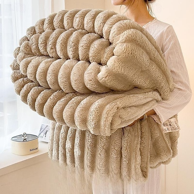 שמיכת פרווה ארנבת יוקרתית בצבע אחיד עבה וחמה קטיפה חלבית לזרוק שמיכת קטיפה רכה ונעימה למיטה במשרד #17526657