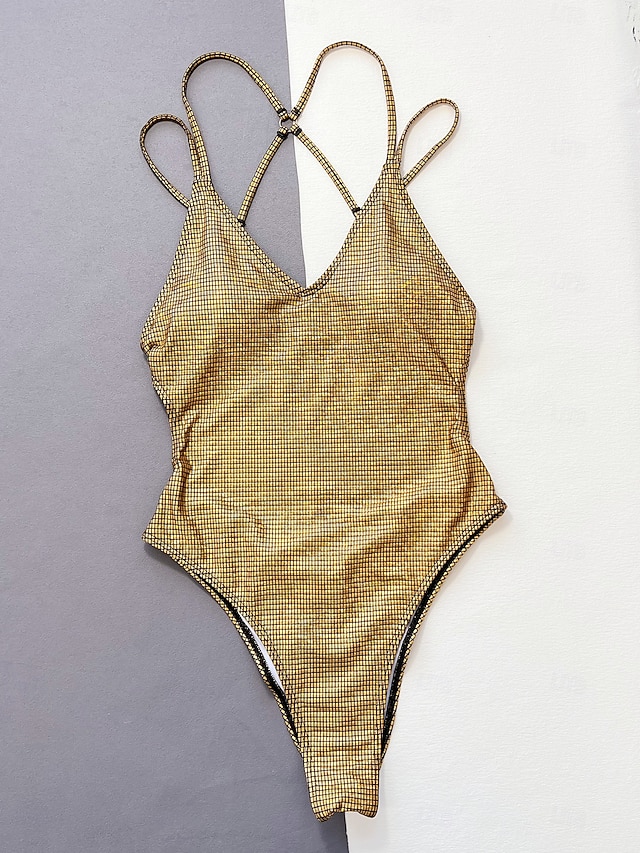 בגד ים חד חלקי לנשים עם חיתוך סקסי בדגם מנוקד מחמיא של הבטן גבוה במותן לבילוי בחוף עם עיצוב צבע אחיד ופתיחת גב לאחור ללא שרוולים #18038969