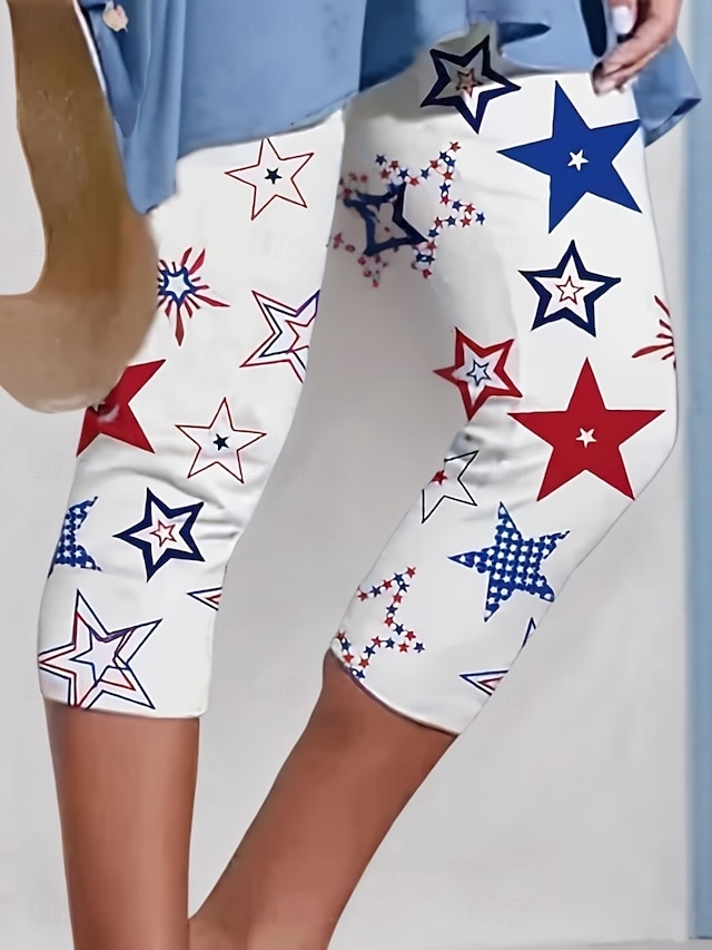 בגדי ריקוד נשים מכנס שלושת רבעי חותלות סגנון רחוב בסיסי יום יומי אורך עגל מותניים גבוהיםPantsיום העצמאות האמריקאי גראפי כוכב מדפיס קומפורט רך נוח סטרצ'י (נמתח) יומי בָּחוּץ חופשה לבן קיץ אביב גזרה צרה #18587108