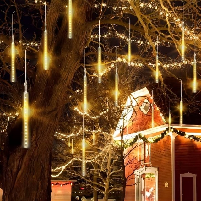 led מטאורים גשם אורות 30 ס"מ 11.8 אינץ' 8 צינורות 192 led נטיפי קרח שלג נופל אורות נצנצים כוכב חיצוני טיפת גשם אורות חג המולד מסיבת חתונה חג קישוט עץ #6249838