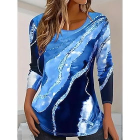 טי שירט לנשים עם צווארון עגול שרוולים ארוכים טוניקה אמבר שיש אלגנטי נוסטלגי טופים רגילים הדפס לחורשה סוף שבוע שחור לבן ורוד כחול כהה כחול ... > לקרוא עוד -