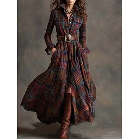בגדי ריקוד נשים שמלת מקסי שמלת שיפט חופשה יום יומי בוהו יומי רגיל משובץ שרוול ארוך דש פול צהוב כהה ירוק עמוק שחור אביב סתיו חורף ... > לקרוא עוד -