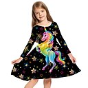 בנות ' תלת מימד חיה חד-קרן שמלה שרוול ארוך הדפסת תלת מימד אביב סתיו חופשה יומי חגים סגנון חמוד יום יומי מתוק ילדים 3-10 שנים שמלה משוחררת שמלה עם כיווץ במותן מעל הברך רגיל |
