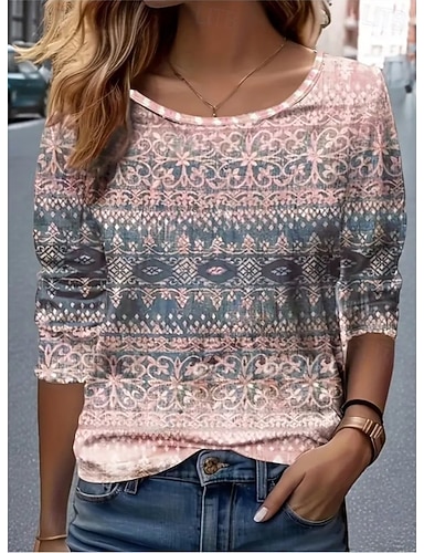קריסמס נשים חולצת טי קלאוס נוסטלגית אופנתית קלאסית שרוול ארוך צווארון עגול עליונות רגילות סוף שבוע הדפסה ירוק סייג' ירוק צבאוני כחול מלכותי כחול זהב חורף