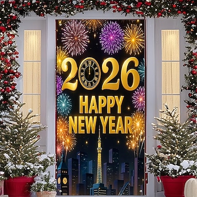 ראש השנה פוסטרים כיסוי דלת באנרים חיצוניים שנה טובה 2026 סגנון חמוד 3D מסיבה חֲדַר שֵׁנָה חדר נוער מעונות סטודנטים חדר שינה של מערת גברים בסגנון אחווה של גברים רקעים לצילום עיצוב הבית