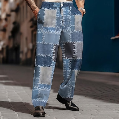 בגדי ריקוד גברים משובץ חליפות מותן בינוני וינטאג' עסקים מזדמנים רשמי לבוש ליום כיס מכנסיים ישרים קיץ אביב סתיו הדפסת תלת מימד פול