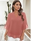 בגדי ריקוד נשים חולצת תחרה חולצה חולצות שמלות חולצות שיפון מכפלת א-סימטרית צבע אחיד אלגנטית מסוגנן בסיסי שרוול 4\3 פעמון סירה רחב חולצות רגילות יומי עבודה אורחת חתונה ורוד מסמיק קיץ אביב סתיו