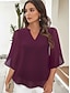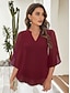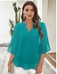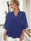 בגדי ריקוד נשים חולצה חולצות שיפון טלאים אחיד אלגנטית מסוגנן שרוול 4\3 צווארון V חולצות רגילות יומי חגים ליציאה שחור לבן ורוד מסמיק כחול נייבי קיץ אביב סתיו