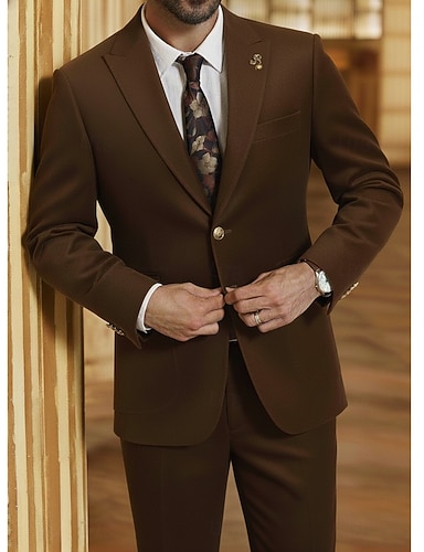 אנשיו של חתונה עֵסֶק חליפות מסיבה דש קלאסי ירוק כהה אופנתי יומי אחיד גזרה צרה סט 2 חלקים