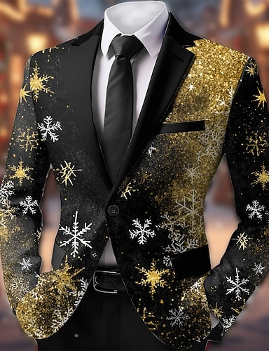 חג המולד בגדי ריקוד גברים פתית שלג ז'קט בלייזר מעיל נוח נושם אומנותי יום יומי בגדי ערב למסיבה יומי פֶסטִיבָל הדפסת תלת מימד כפתורים כל העונות פתוח שרוול ארוך שחור אודם פול
