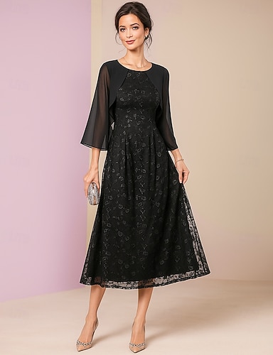 גזרת A באורך הקרסול השמלה המפלגה שמלת קוקטייל שרוול 4\3 צווארון עגול קצר אלגנטית רשמי תחרה פוליאסטר שמלה לאם הכלה עם תחרה