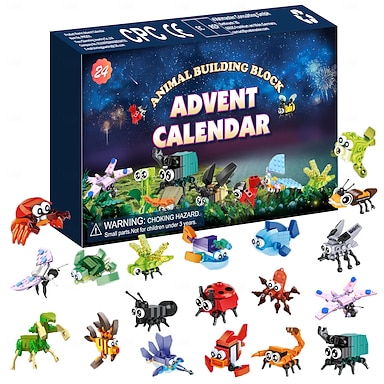 לוח שנה לחג המולד עם אבני בניין של חיות לשנת 2025, ספירה לאחור של 24 ימים, סט צעצועי בנייה DIY, קופסת מתנה לחג לילדים בנים בנות