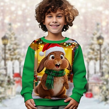 חג המולד בנים תלת מימד גראפי שפן טרנינג שרוול ארוך אביב סתיו אופנתי בסיסי ילדים 4-12 שנים צווארון עגול קצר בָּחוּץ קזו'אל יומי רגיל