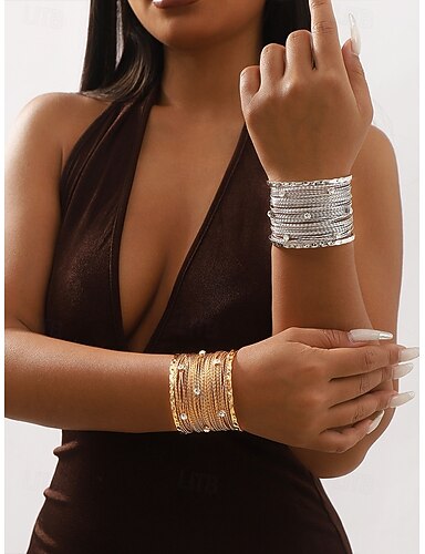 צמיד ארוג אלגנטי עם חפתים עם הדגשות ריינסטון - תכשיטי אמירה אופנתית לנשים