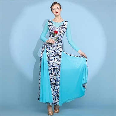 ריקודים סלוניים שמלה הדפסה בגדי ריקוד נשים הצגה הדרכה חצי שרוול גבוה קטיפה