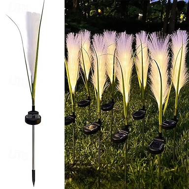 אורות גינה סולאריים, תאורת ריד חיצונית עם סיב אופטי, תאורת לד עמידה למים לחוץ, קישוט לחצר פטיו ושביל