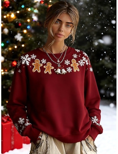 בגדי ריקוד נשים סווטשירט סוודר פתית שלג יום יומי שרוול ארוך צווארון עגול קצר חולצות רגילות מתנת חג המולד רחוב לבוש ליום דפוס יין אביב סתיו חורף