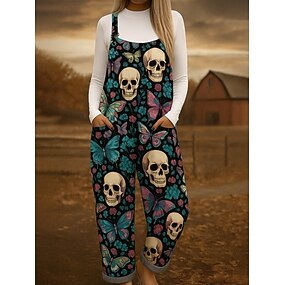 Női Bell Bottom Lobbant nadrág Nadrágok Kényelmes leggings Divat Teljes hossz Közepes csípő Koponya Virág Oldalzsebek Széles lábszár Nyomtatott Mokaszinok Mikroelasztikus Halloween Hétvége Medence